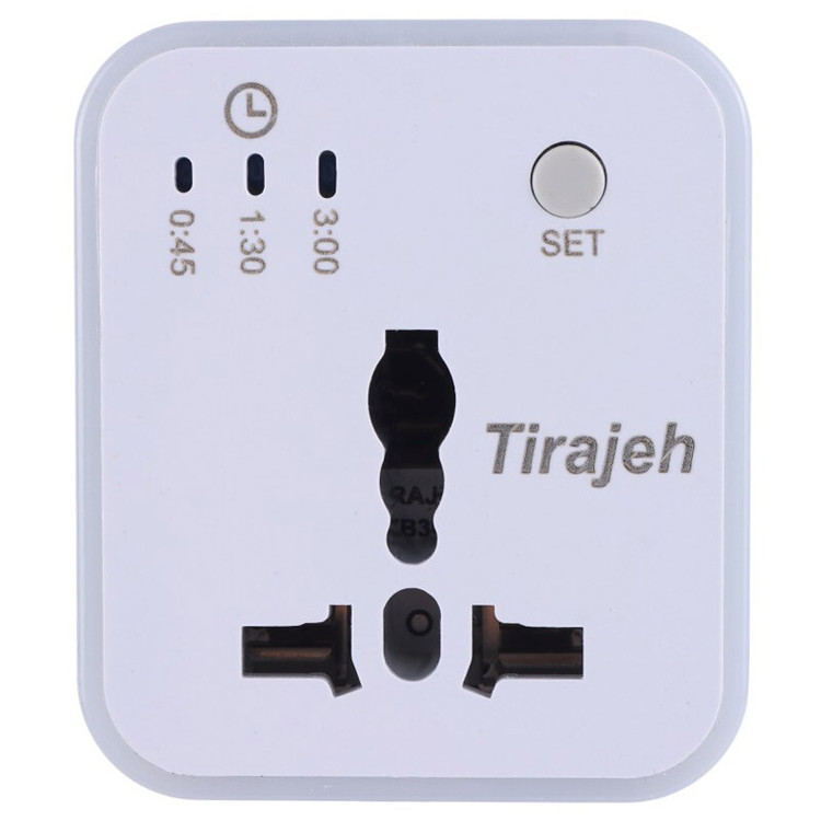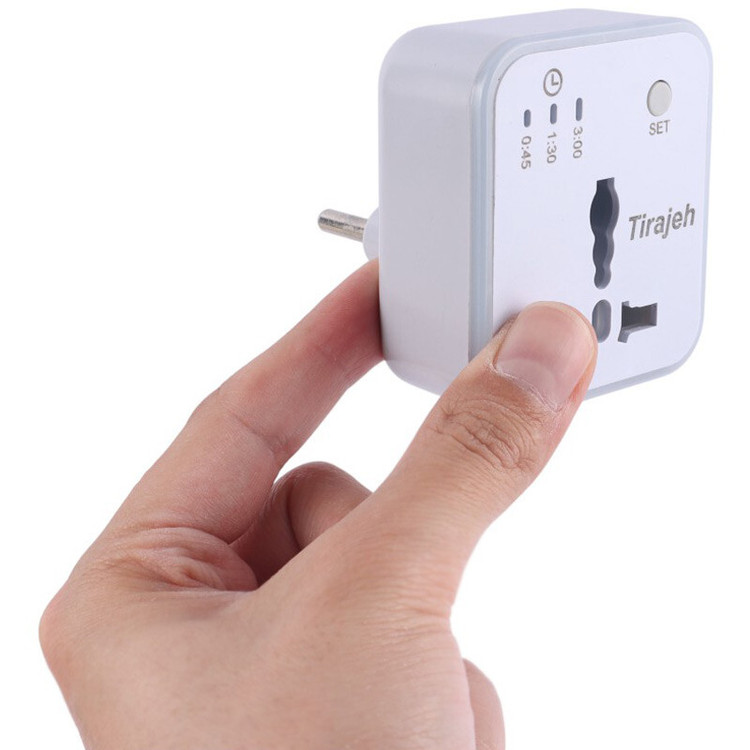 مجهز به دو شاخه EU سازگار با برق ایران، دارای کلید فیزیکی جهت تنظیم تایمر