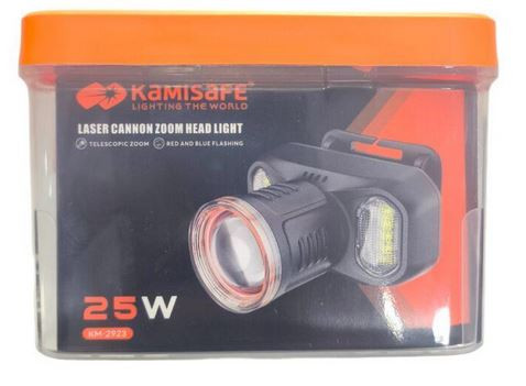 چراغ پیشانی Kamisafe KM-2923 یک هد لایت حرفهای و بادوام است که با قدرت 25 وات و طراحی زوم تلسکوپی، نوردهی فوقالعادهای را حتی در تاریکترین شرایط به شما ارائه میدهد. این چراغ دارای لنز قابل تمرکز (Zoom) و چند حالت نوری شامل نور سفید متمرکز، نور جانبی، و حالت چشمکزن قرمز و آبی برای موقعیتهای اضطراری است.