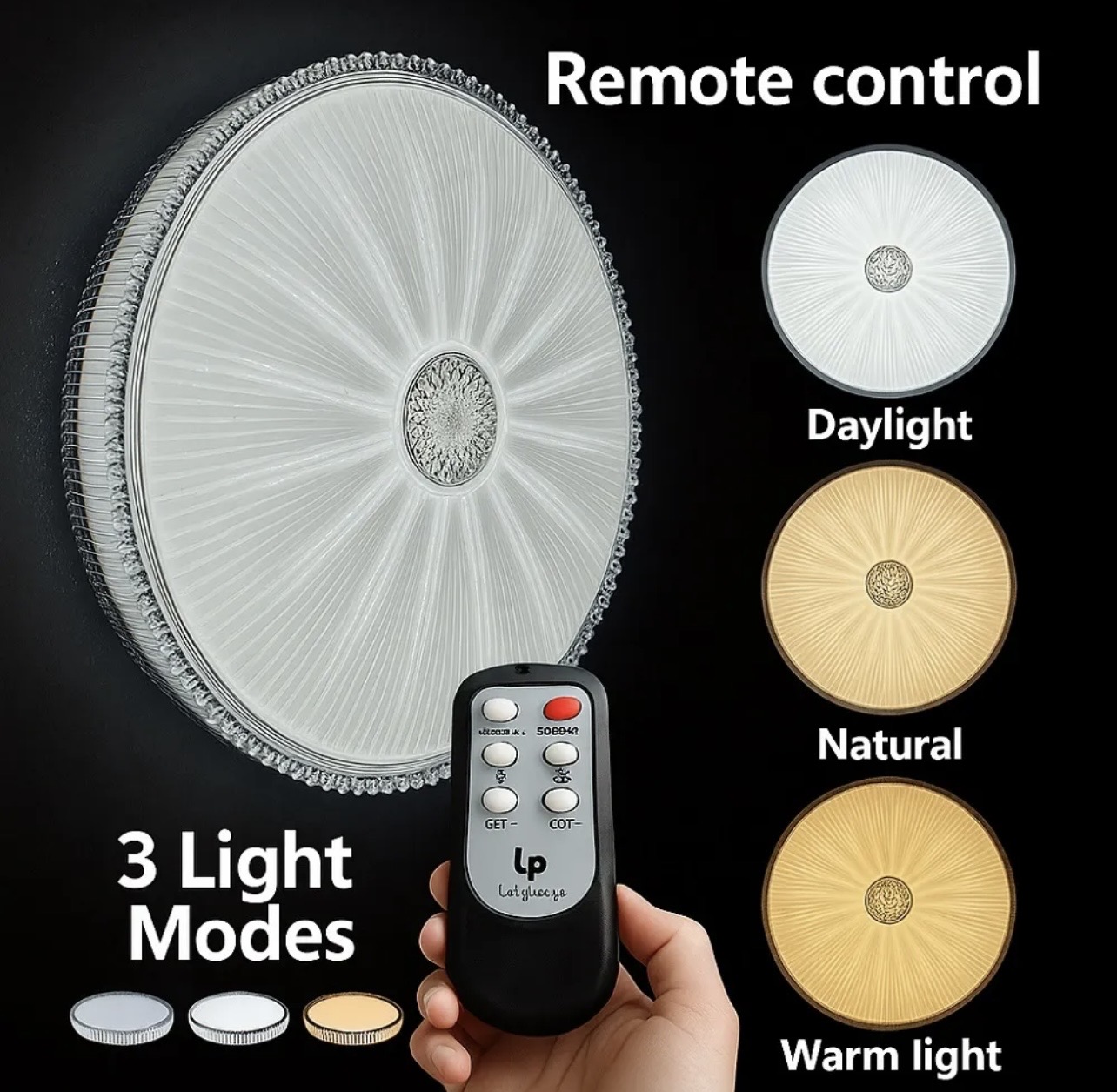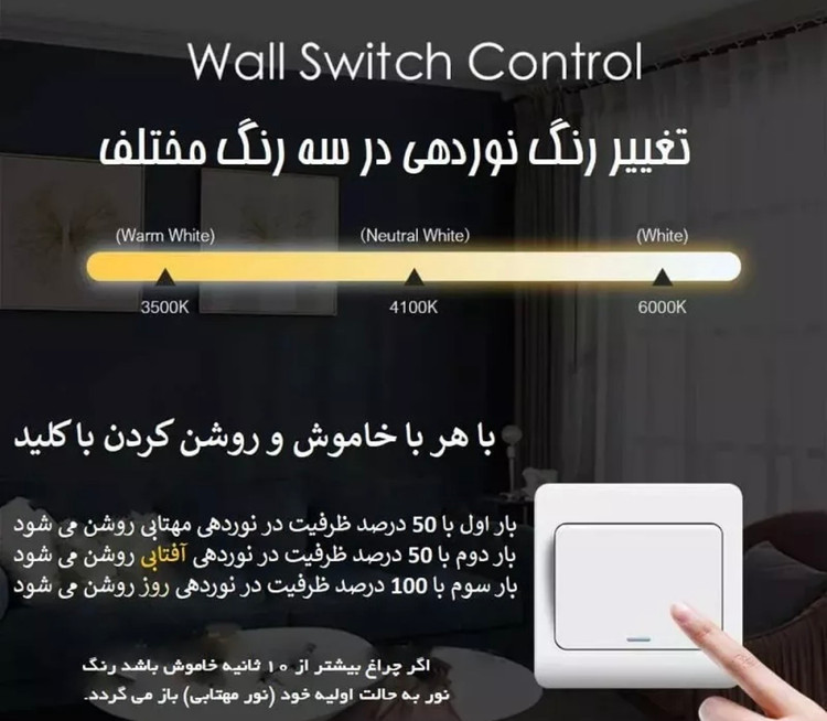 مدل ریموت دار امکان تغییر نور بین سه حالت سفید، آفتابی و ترکیبی را فراهم میکند.