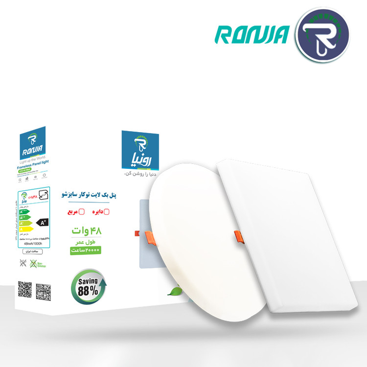 چراغهای پنل رونیا با ضخامت بسیار باریک و وزن کم در ابعاد و توانهای متنوع گزینه مناسبی به منظور تامین روشنایی داخلی و دکوراتیو به شمار میرود. این پنل ها نوری کاملا یکنواخت، ملایم و بدون خیرگی ایجاد میکند، همچنین بهرهنوری بالا و طول عمر بسیار زیاد از مزایای دیگر آن و راهکاری کارآمد برای افزایش بهرهوری سیستمهای روشنایی است.در این نوع پنل منبع نور در پشت پنل قرار دارد و نور مستقیم و درخشانتری ساتع میکند.
