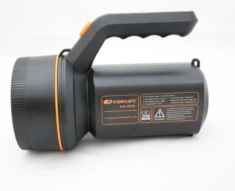 چراغ قوه شارژی کامی سیف KM-2669 دارای یک عدد لامپ LED مهتابی با توان خروجی 10 وات، با برد نوردهی 75 تا 80 متر. یکی از ویژگی های خوب این چراغ قوه، مقاومت در برابر آب است تا با خیالی آسوده در شرایط آب و هوایی نامناسب در زیر باران و با کارایی کامل و نوردهی قدرتمند از آن استفاده کنید.