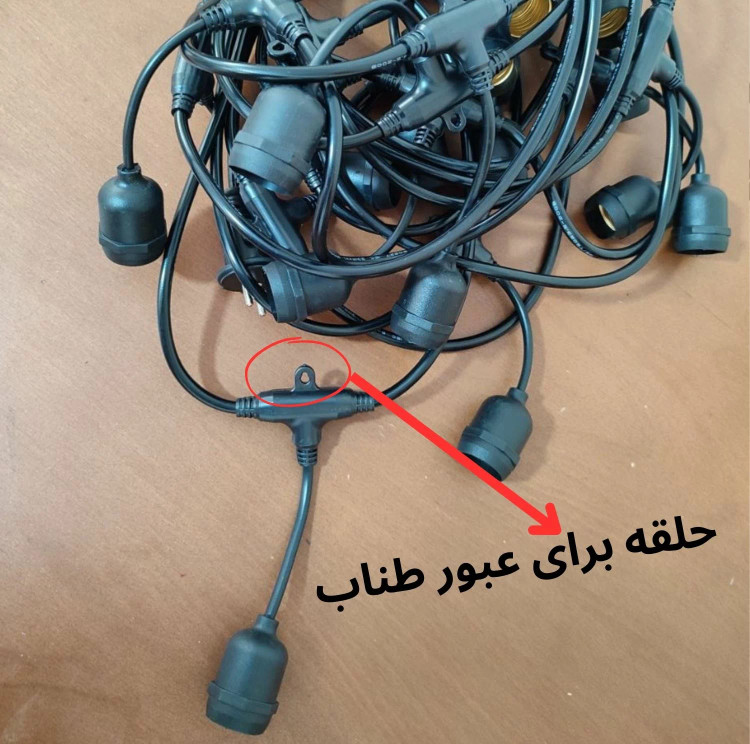 کابل این ریسه لامپ دارای حلقه جهت عبور سیم مفتولی یا طناب برای استحکام کلی ریسه میباشد.